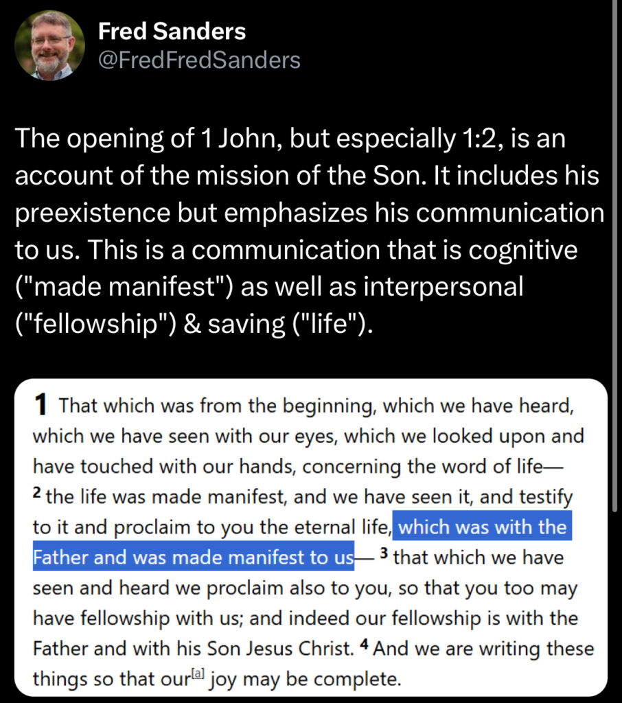 Again, in context, God’s eternality in the revelation of Christ becomes a vital element. Here eternal generation vs. temporal creation become interesting distinctions biblically.